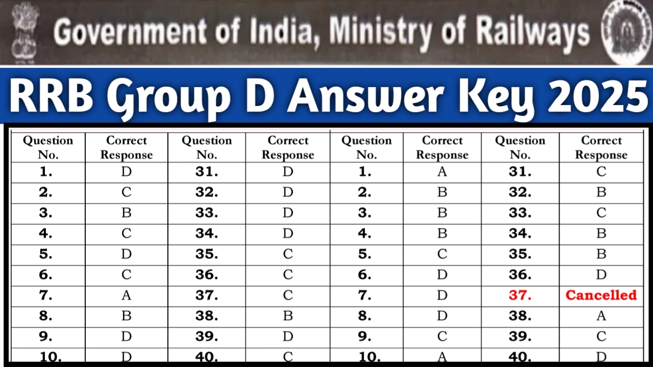 RRB Group D Answer Key 2025: The Railway Recruitment Board has successfully conducted the Group D exam for level 1 posts under recruitment notification CEN 08/2024 for various shifts. This recruitment aims to recruit 32, 438 vacancies across various states and union territories. The Railway Group D exam is currently going on from 27 November 2025 and will continue till 16 January 2026 with exam city intimation slip available from November 19, 2025 on the official portal. The Group D Answer Key 2025 is an important document which displays correct responses of marked questions by candidates at the exam center. To access the answer key, the candidates must login with username and password to get the response sheet and provisional key. For more information, read the complete article.